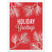 With a punch of red and a little subtle embossing, this pine branch design is perfect for your annual company Christmas cards. All of our greeting cards can be personalized on the inside with hot stamped foil imprinting.