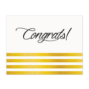 Bold gold foil stripes on a crisp white field and a stylish "Congrats!" says it all. Your personalization will be in gold foil. Available in A2 (4-¼" x 5-½") card size with white mailing envelope.
