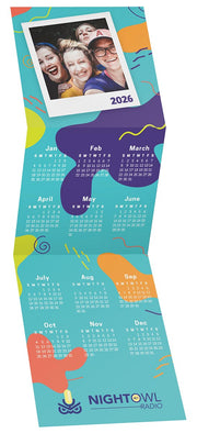 Ordering is easy; just upload your logo and add your business name for a completely custom promotional z-fold calendar. Sending this to clients around the holidays? Add a holiday greeting and send out tri-fold calendar cards.