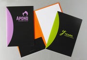Available in 7 colors with matching imprint colors, these vibrant padfolios will make a statement at your next event or giveaway. Your company logo or event branding is foil stamped on the front cover. Just slip your horizontal business card into the die cuts on the folio flap for a uniquely branded giveaway item.
